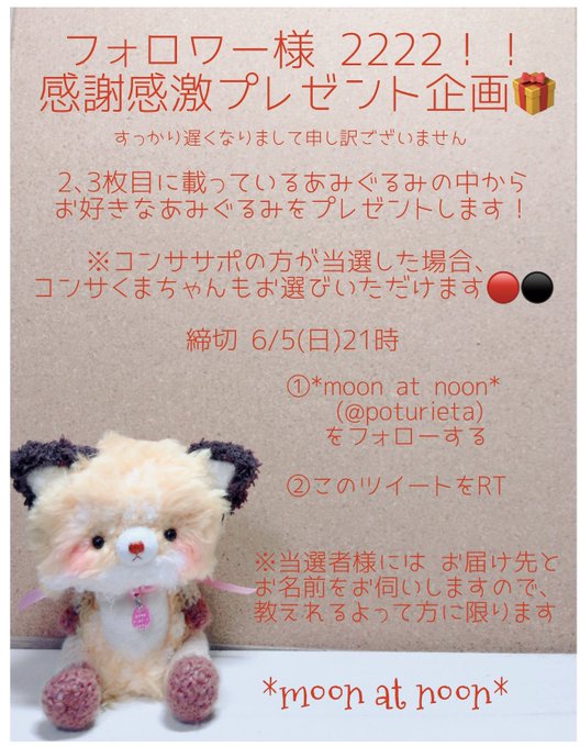 7/3(日)まで #ほっこりモコモカ 大人気新作❣ポージングマスコット(1種ランダム)&ミニソファーのセットをTwitterで3名様にプレゼント🎁 参加方法 ①@mocomocha_qlia をフォロー ②この投稿をRT 引用RTで当選確率UP🎊 ↓注意事項 qlia.net/zakka/present.… #プレゼント企画 #フォローRTキャンペーン