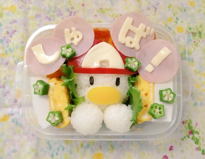 ちらっと映って、ぺこちゃんに可愛い!言ってもらえて嬉しかった🥰💞紹介ありがとうございました! スバルドダックが飛び出すようなお弁当です🙌スバルちゃんのオリ曲「スターライト」をイメージしてオクラを散らしたのがポイント🥳✨ #ホロライブキャラ弁選手権 #プロテインザスバル