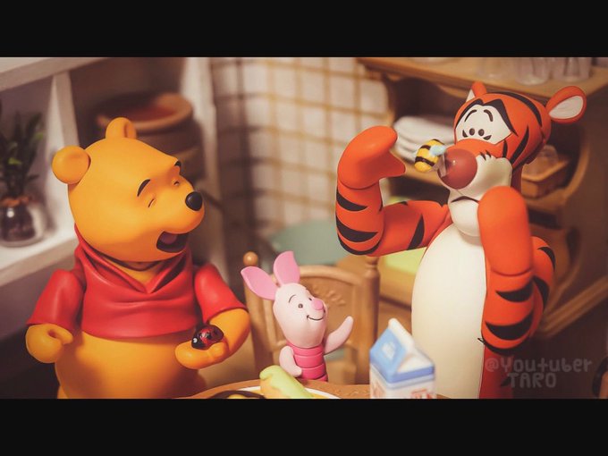 #夜のフィギュア撮影会 9/27 お題 『のんびり』 🐷「プー、きみは 何をしているんだい?」🐻「ぼくは『何もしていない』をしているのさ。」 (既出) #オモ写 #toyphotgraphy #プーさん #winniethepooh #ピグレット #ディズニー #disney #リボルテック #名言