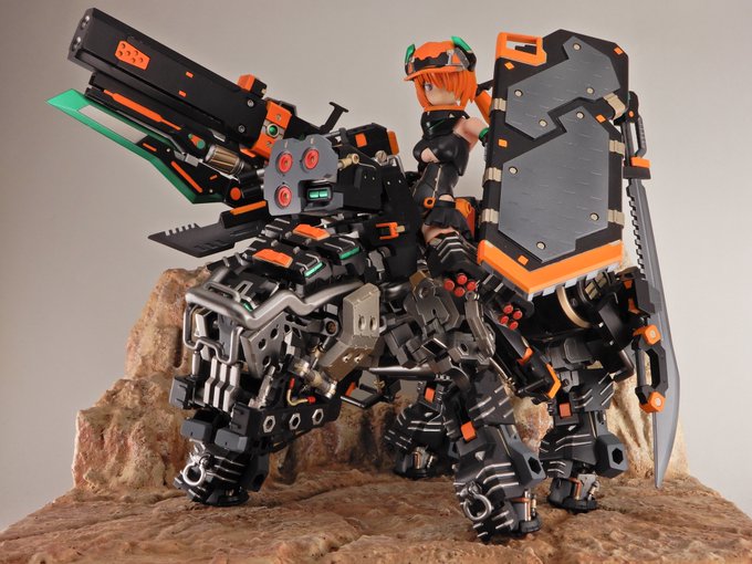 源内あお用ヘキサギア ガウル 完成しました。 ヘキサギアLOZをベースにフレーム部をディテールダウン。 胴体をジークスプリンガーに変更してややサイズダウン。 この後、製作予定のあおの武装などをマウント出来る様に作りました。 #フレームアームズ・ガール #ヘキサギア #創彩少女庭園