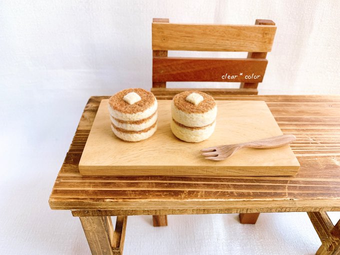 「わぁ!とってもいいにおい~!」 今日のおやつはホットケーキ🥞 シロップをかけていただきま~す! おや?いいにおいをかぎつけてお客さんがやってきたみたいですね♪ #シルバニアファミリー #ホットケーキ #シロップ
