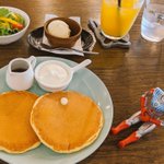 今日はホットケーキの日🥞 シルバニア村ではホットケーキパーティーが開かれています🎉 大きいホットケーキ、とっても美味しそうですね✨ #シルバニアファミリー #シルバニア #ホットケーキ #森永ホットケーキミックス #ホットケーキの日