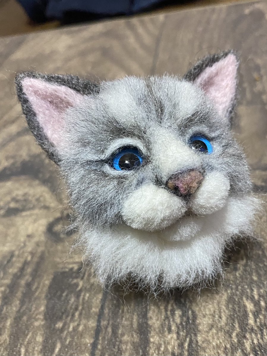 #ハンドメイド #ハンドメイド作品 #ハンドメイド作家さんと繋がりたい #ハンドメイドイベント #ハンドメイド好きさんとつながりたい #羊毛フェルト #猫 #ホラー 初めて🐈⬛超リアル猫🐈作ってます 頭だけ置いていたら気持ち悪い👎 と家族に不評😝完成まで待ってて