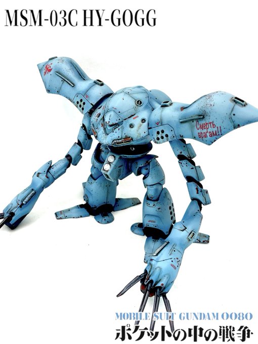 HGUC ハイゴック 完成です♪ 色合いは基本設定を踏襲し、塩ケープ剥がしを中心としたウェザリング仕上げとなっております♪♪ デティールアップは最小限にとどめて、スジボリの追加とモノアイを別パーツと交換しました♪ ↓画像が続きます♪♪ #ポケットの中の戦争 #ジオン水泳部