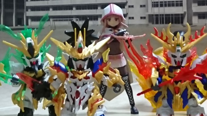 #夜のフィギュア撮影会 早め お題:誰 過去 SDガンダムワールドヒーローズのOP「誰がために愛は鳴る」を歌ってるのはいろはたちを演じているTrySailである。 #SDガンダムワールドヒーローズ #マギアレコード #フィギュア撮影友の会