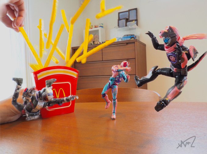 『ポテトパニック』 約30年前に遊んでた昔のオモチャで、今遊んでる(笑)オモチャ達が遊んでます🤤 #豆魚雷オモ写 #仮面ライダー #マクドナルド #まいてぃphoto #オモ写 #toyphotography