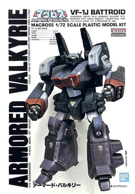 ハセガワ 1/72 アーマードバルキリー ガンプラと勝手が違って戸惑うこともありましたが何とか完成です。 劇中のイメージで手を大きく(ロボマニ丸指4L) 足はプラ板貼って1.5ミリ程幅増し足首基部で5ミリ延長しています。 パッケージ風に汚して仕上げました。 #マクロス #アーマードバルキリー