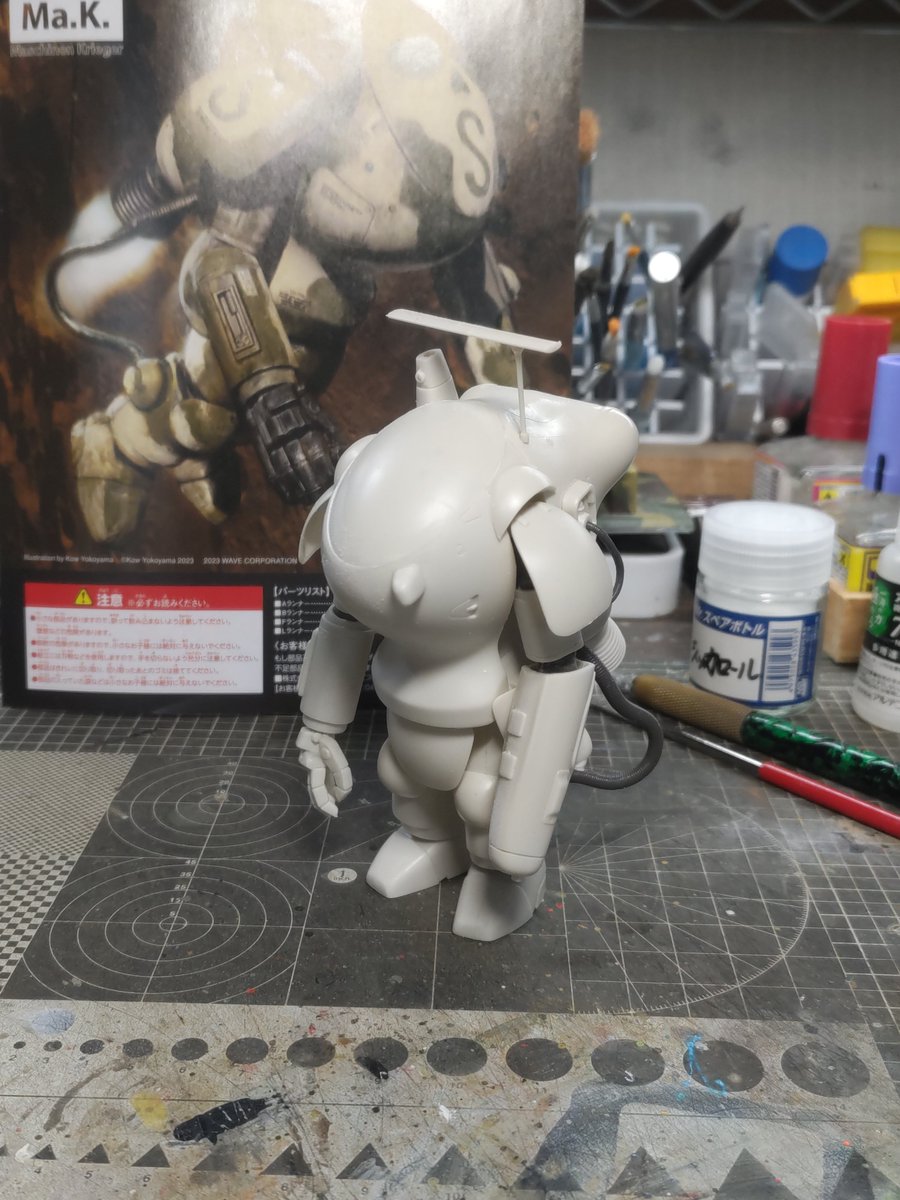 キュスターをやりながらなのでゆっくりですがとりあえず仮組完了 ファイアボールとは違う背中のラインがセクシーですね 新しいレーザーもとても嬉しいサプライズ、このレーザーはPrg58レーザーガンでいいのかな?新しい装備になるのかな? #WAVE #ファイアボールSG #マシーネンクリーガー #横山宏