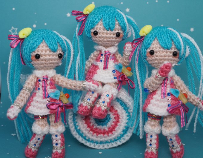推しぬい、完成しました! 娘の大天才、ジーニャスくん、わいてるくんと自分用のテンス、旦那用のミクさん! 途中テンスが可愛く出来て自分用に昇格w マジミラ土日、わいてるくんはカフェに連れていきます! #ファンクアート先生 #しろっぽ #マジカルミライ10th #マジカルミライ2022 #初音ミク
