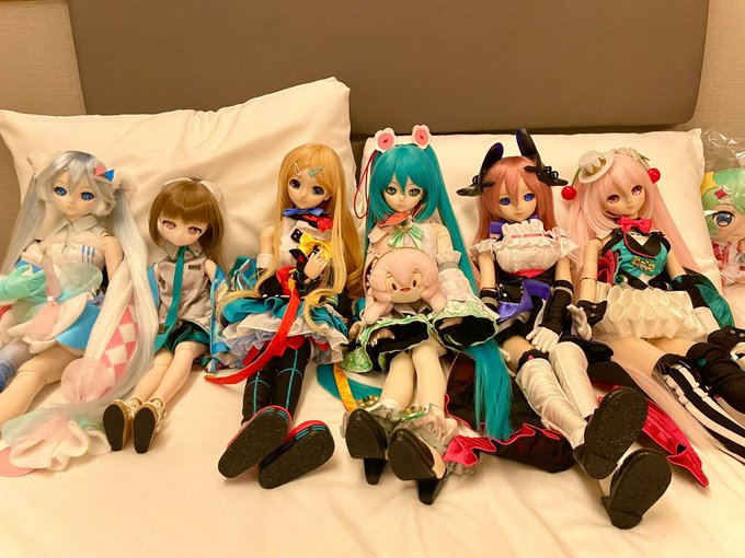最終日に向けてみんなのお手入れ完了髪の毛つやつやふわふわの絡みなし! 明日もちゃんと全員連れていくので対戦よろしくお願いしますあと名刺全部使い切りたいので絡むぞぉ!どんどん絡まれても〇!写真も記念に! #ドルフィードリーム #マジカルミライ2022 #ドールオーナーさんと繋がりたい