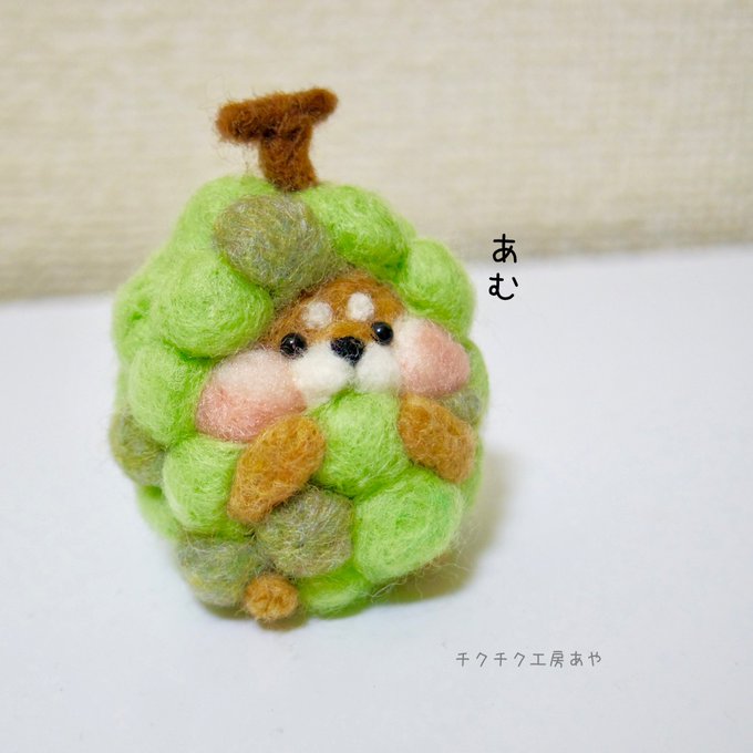 シャインハリさんです🍇 うん❤️ 柴さん以外もかわいいな❤️❤️ * ハリネズミさんもあむっと♡ #羊毛フェルト #ハンドメイド #ハンドメイド好きさんと繋がりたい #ハリネズミ #シャインマスカット #マスカット