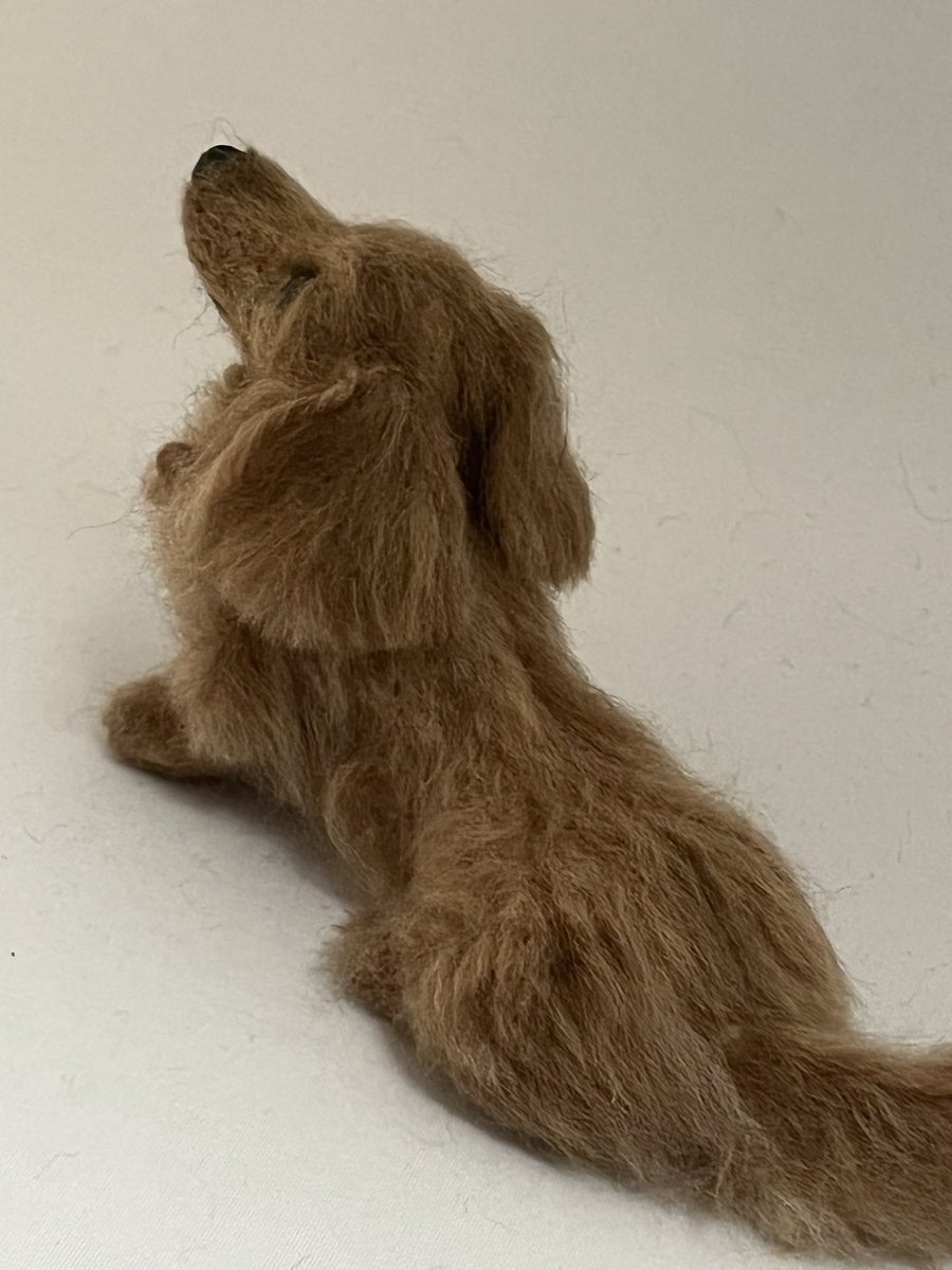 羊毛フェルトのミニチュアダックス 19歳9ヶ月で虹の橋を渡ったショコラくん。今回は大切な遺毛をお預かりし、耳毛として使用させて頂きました。 #needlefelt #needlework #miniaturedachshund #handmade #羊毛フェルト #羊毛フェルトのワンコ #ミニチュアダックス #羊毛フェルト作品 #ハンドメイド