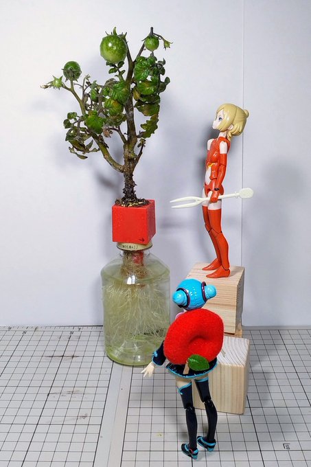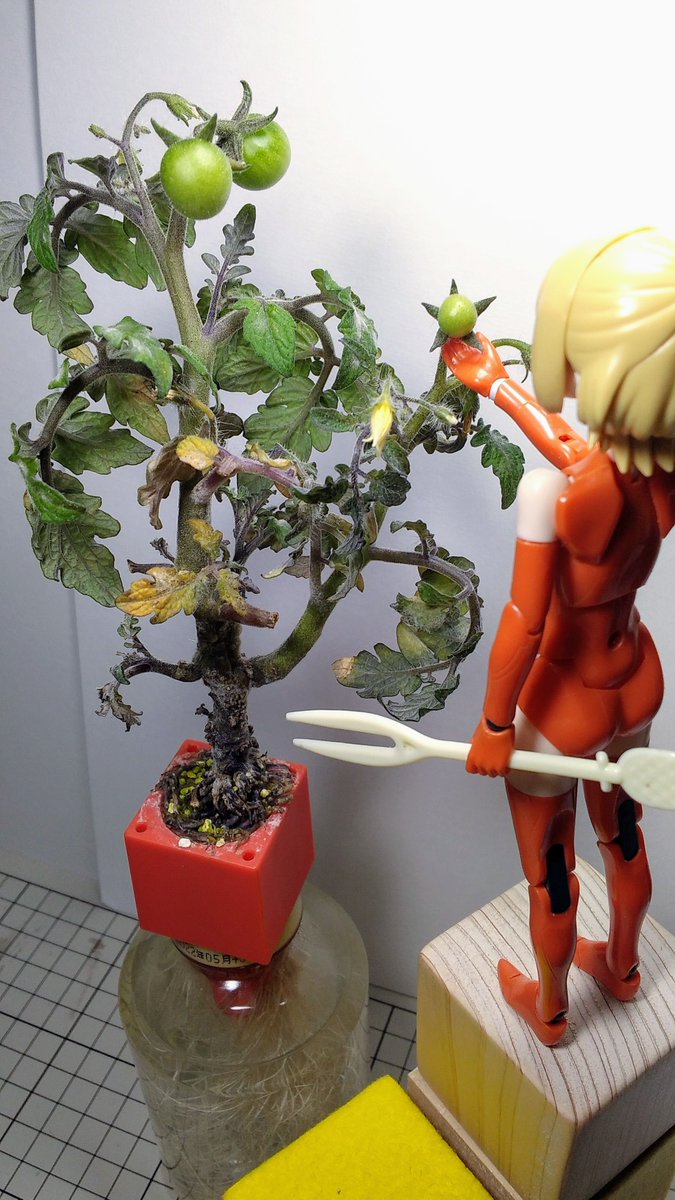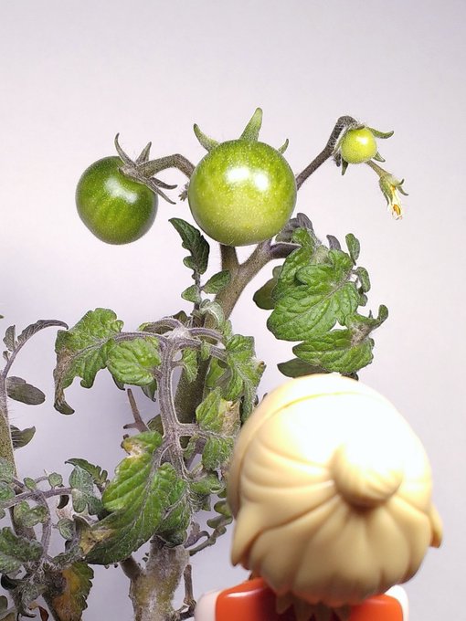 ぷいぷい家庭菜園🌱ミニトマトです。 2株植えて、大分育ってきました😃 上の方は写せませんでしたが、いくつも果房が出来てきています😊 わさびちゃん達に見せたら楽しみぷいね!と喜んでました😆💦 #モルカーファンアート #家庭菜園 #ミニトマト