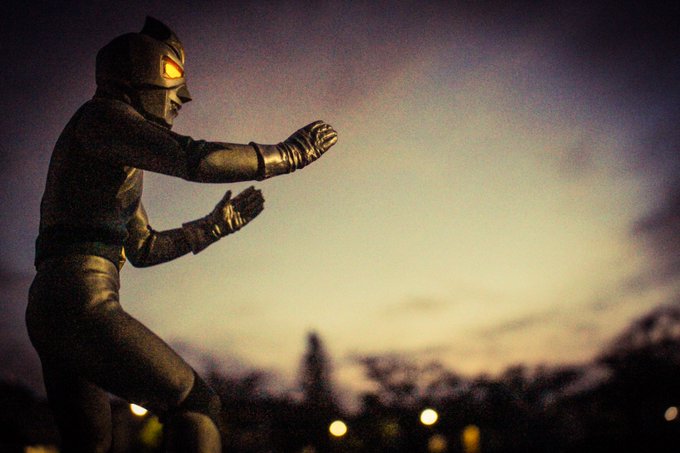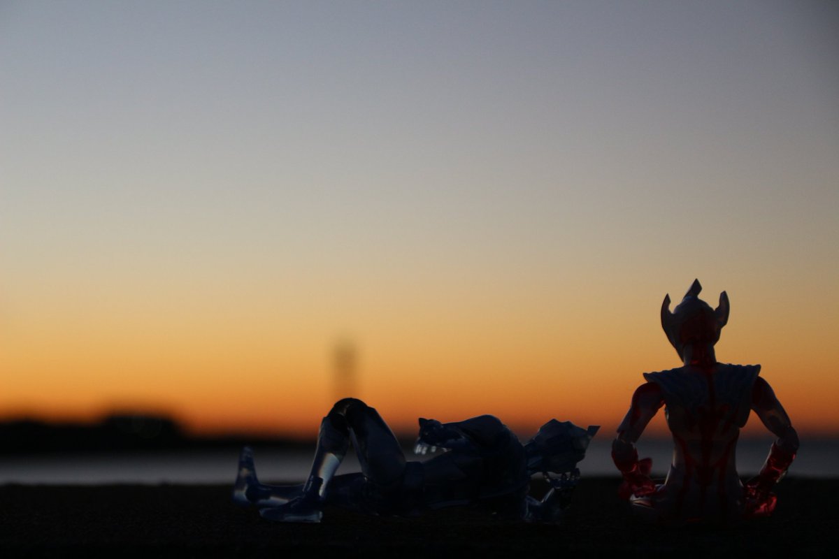 #夜のフィギュア撮影会 お題『伝説』 ミラーマン!円谷プロ伝説のヒーロー!ミラーナイフが宙を切る!戦え僕らのミラーマン! #ミラーマン #エヴォリューショントイ #ヒーローアクションフィギュア #円谷プロ #オモ写