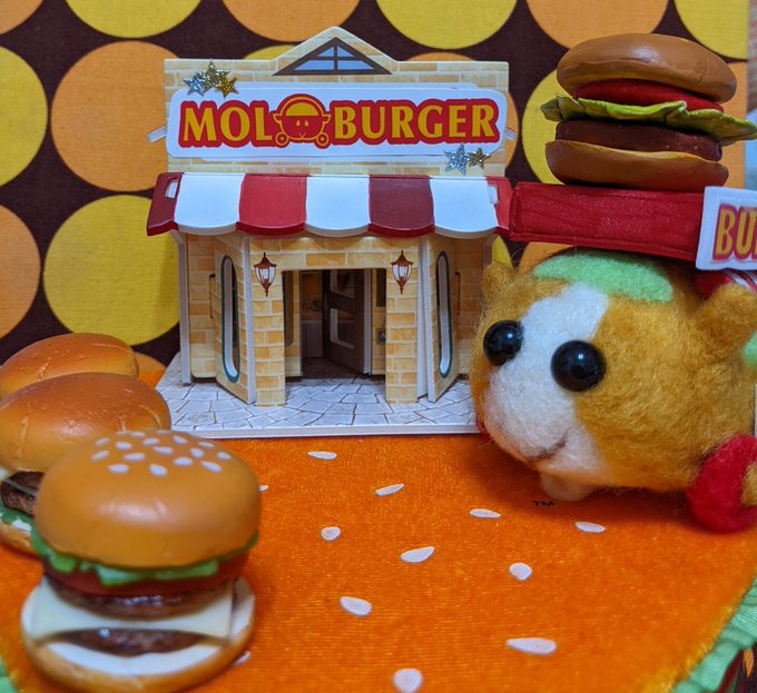 ハンバーガーちゃん🍔お誕生日おめでとう🎁🎂🎉だいぶ前に作ったハンバーガーちゃん、シロモちゃん、テディちゃん、ゾンビモちゃんも一緒にLet's PARTY🥳 #PUIPUIBIRTHDAY #ハンバーガーモルカー誕生日 #PUIPUIモルカー #モルカーDS #モルカーファンアート