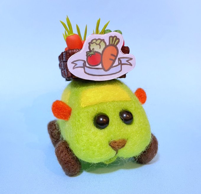 モルカーDS 3話にちなみ、ペーターと小物を作りました✂️ お兄さんがシロモちゃんを猛烈になでなでしていて、ほっこり☺️🍀 ペーター:羊毛フェルト、厚紙、アクリル絵の具(プレート) レタス:色紙 #モルカーDS #モルカーファンアート
