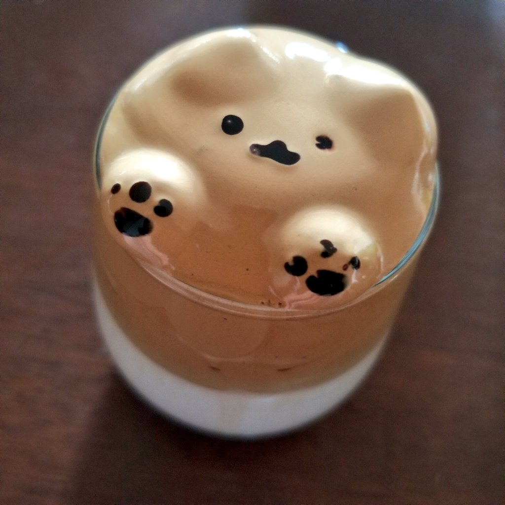 おはようございます☀ 今日のコーヒーはいつものラテと逆バージョン😆 ダルゴナコーヒーです☕ もっと3Dになるはずが…まぁいっか🤣 素敵な週末お過ごしください〜🍀 #ラテアート #みんなで楽しむTwitter展覧会
