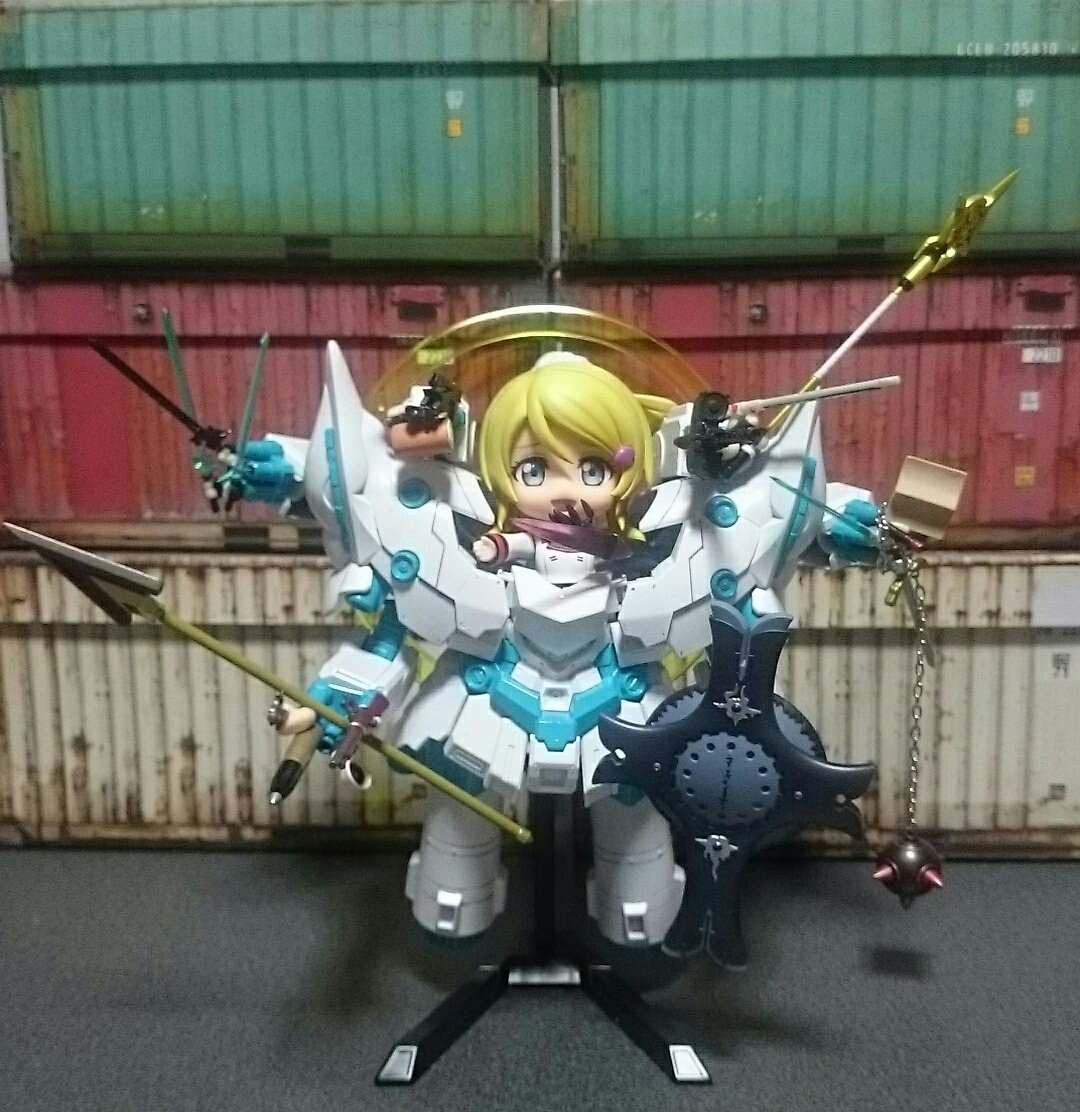 #深夜のねんどろ撮影60分一本勝負 5/2【ほかのひとがもってない】 ねんどろいどにちょうどいいネオ・ジオング 持ってる人は、数人いそうですが、世界に一つだけのオリジナルカラーに塗りました(*゚∀゚) #ラブライブ