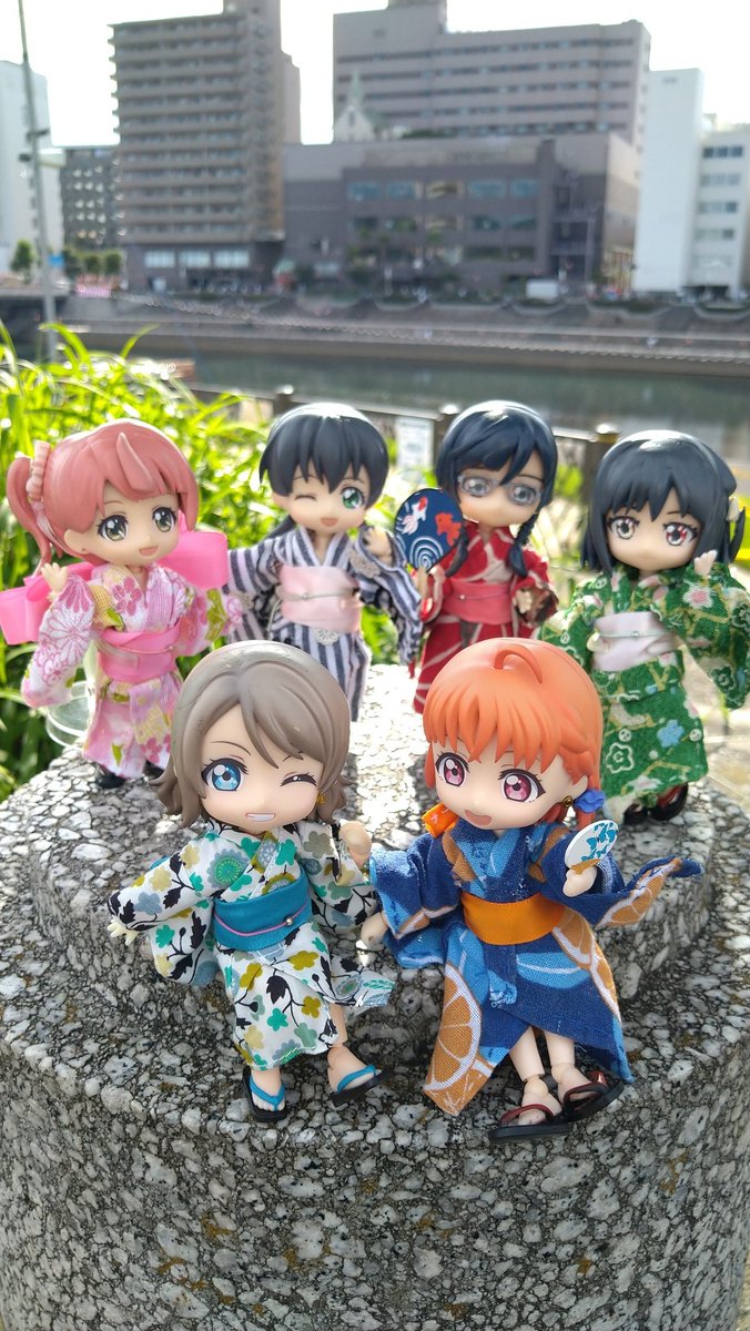 11/16【からふる】【既出】或る夏祭りの午後、カラフルな浴衣併せの2校合同ねんどろ撮影会より👘📷 撮影:静岡県沼津市狩野川・あゆみ橋付近 2022/7/31 #小さなラブライブ #虹ヶ咲 #ラブライブサンシャイン #深夜のねんどろ撮影60分一本勝負