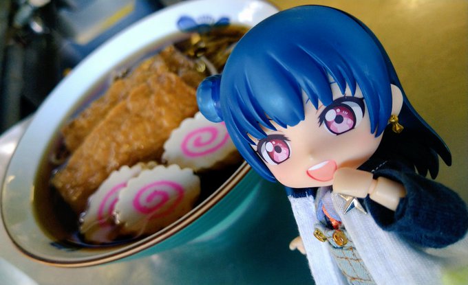1/25【あたたかいたべもの】【既出】(フライング)沼津の駅ホームそば屋・桃中軒のきつねそば。温かいうちにお食べ善子よ………🍜😈 #小さなラブライブ #ラブライブサンシャイン #深夜のねんどろ撮影60分一本勝負