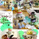 livlyisland.rooot.fan #リヴリー20周年 #リヴリーファンアート #羊毛フェルト お祝いの思いを届けたくてアニバーサリーハット作ってみました。黄色いフェルトが無くて、バッジは紙(´・ω・`) ネオピ、ユキワラベ、スナイロユンク、ラビネ、ナイトメアです。ラビネ体操を再現したかった!