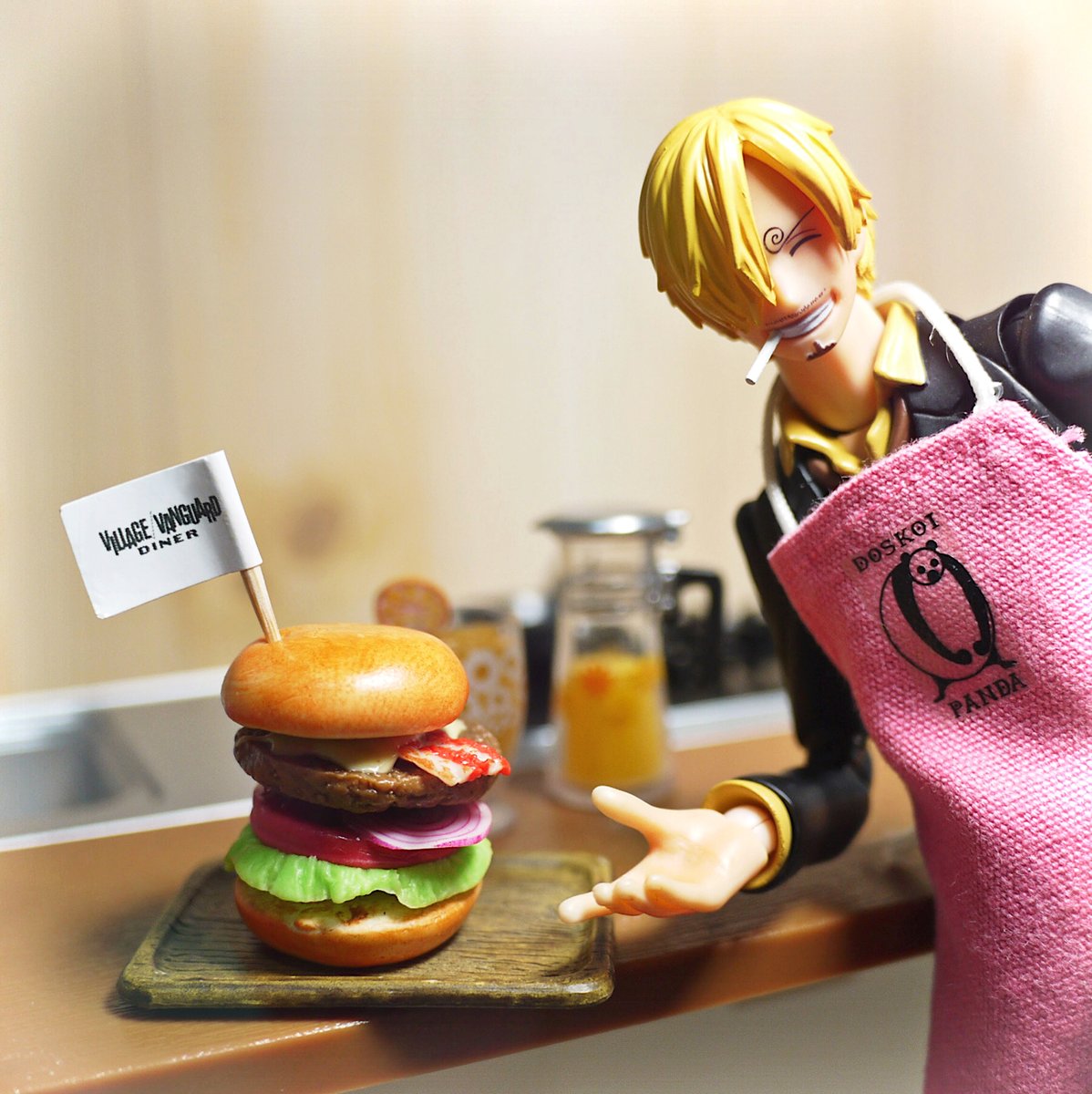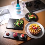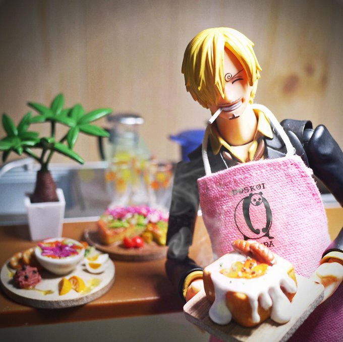 #夜のフィギュア撮影会 1/9 お題『フリー』 昨年末にゲットした #レインボー のガチャの #彩りスイーツコレクション をサンジ君と撮ってみた!質感素晴らしくて写真写り最高!!あと今回のこのケーキ、サンジ好きとしては名前がまた最高なのですよ…長いからリプに。 #ガチャガチャ #カプセルトイ