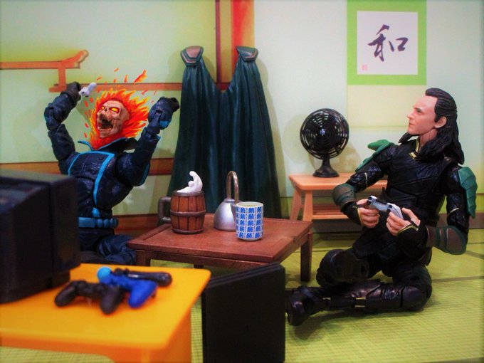 #夜のフィギュア撮影会 3/28 『反撃』 今週の玄関フィギュアディスプレイは… タイムトラベルから反撃はあるのか?#ロキ アーツのロキのヘッドデジプリは?ばらつきがなければ良いフィギュアなのになー #楽しく玩具撮影中 #shフィギュアーツ #Avengers
