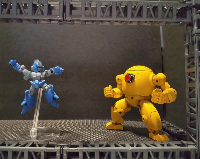 モビルスーツアンサンブル リ・ガズィをロックマン風に そして30MM エグザビークル(装甲突撃メカVer.)をみんなのトラウマボスである、イエローデビル風にしました なかなかそれっぽくなって楽しかったです #モビルスーツアンサンブル #30MM #ロックマン