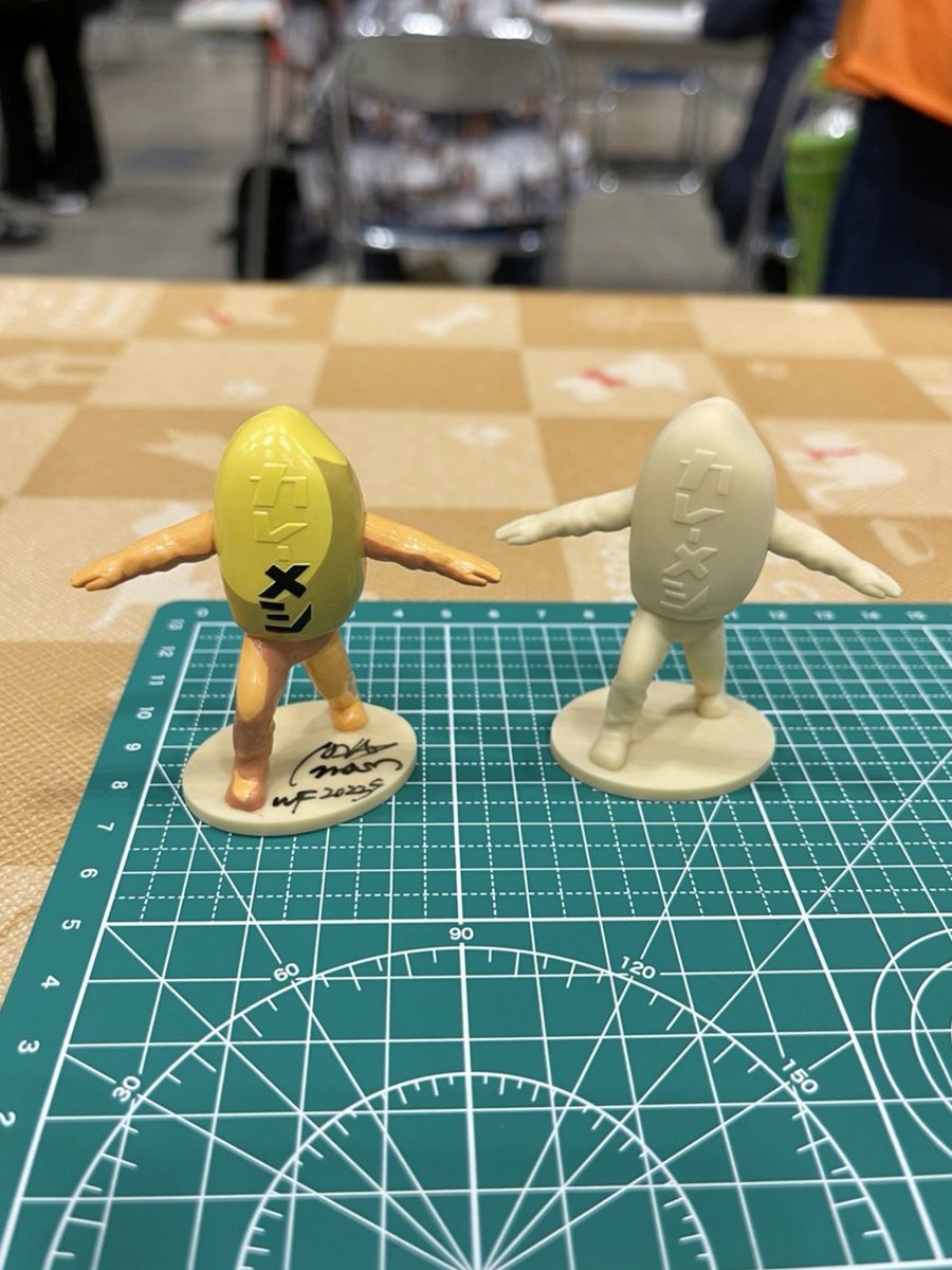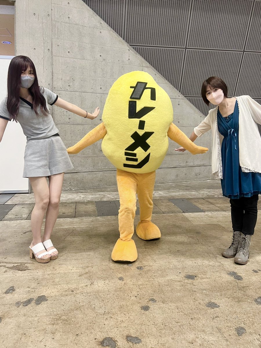 カレーメシくんと!! カメラ回っていない合間に声掛けてくれたり生配信でのコメント沢山ありがとうー! 午後も生配信するので引き続き楽しみましょー!!😉🤍 ※カレーメシくんフィギュア(途中)は日清さん辺りに展示中だと思う! #WF2022S #ワンフェス2022夏