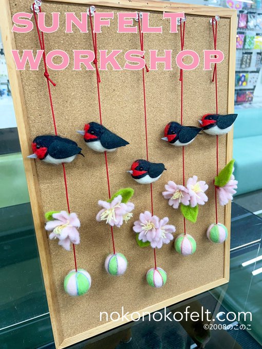 おはようございます。 6月10日(土)13日(火)は、サンフェルトさんで #ワークショップ があります。 今回は「尾長鶏と桃、鞠の吊るし飾り」 朝を招き卵を産む縁起の良い鶏と花、葉、種に薬効があり邪気祓いになると考えられている桃を作ります。 詳細は↓ nokonokofelt.com/?p=5485 #羊毛フェルト