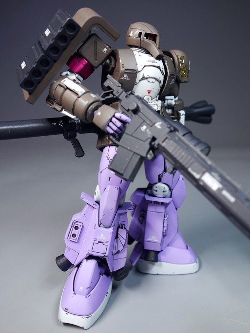HG ヴァイオレット ガンダム 完成です♪ 一年戦争は最悪の通信環境の中での戦いだった。 これは復活した古の手段「手紙」を、戦場へ運搬する為の機体である。 名称は伝説の自動手記人形にちなんでいる。 激しい任務で失われた両腕は、前線で応急修理された。 #ヴァイオレット・エヴァーガーデン