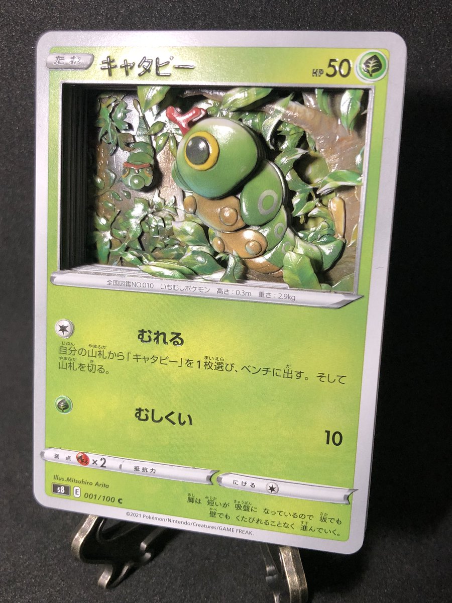 今回の #新作シャドーボックス は #ヴァンガード から邪甲将軍ギラファのギフトです。両面ギフトですので、カードを剥いて使える枚数を倍にしました。拡張したり、オーロラシールを入れたり、自分のテクニックをたくさん使いました。胸が光ってるように見えますが、これが私のリングライトの反射です