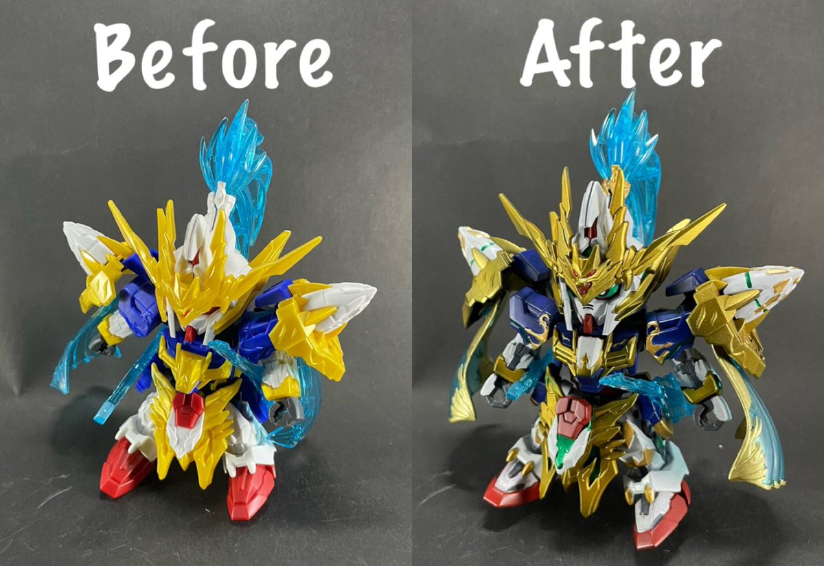 孫尚香 ストライクルージュ 完成しました( ´ ▽ ` )ノ 今回は色々と削ってシャープ化を 施して見ました😋 筆塗り部分塗装とスミ入れ 半光沢仕上げです🎶 いい感じだと思います✌️ 素組みとの比較も しときます。続く… #ガンプラ #三国創傑伝 #ガンプラ好きと繋がりたい