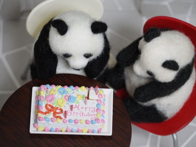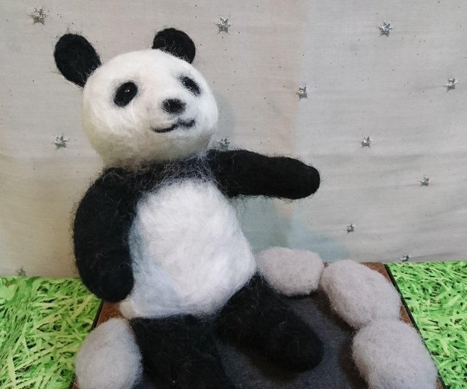 【メイキング】シャンシャン 後ろ脚をつけて、耳の位置を調整し、しっぽをつけて、完成❣ シャンちゃん、ずーっと幸せでいるんだよ♪ あれ💦・・やっぱりちびタンが作ると、どうしても手足がみじ・・・ 💦 #上野動物園 #シャンシャン #羊毛シャンシャン #羊毛フェルト #ジャイアントパンダ twitter.com/YoshikoMoon4…