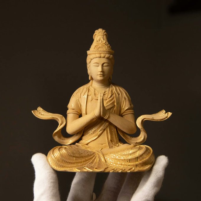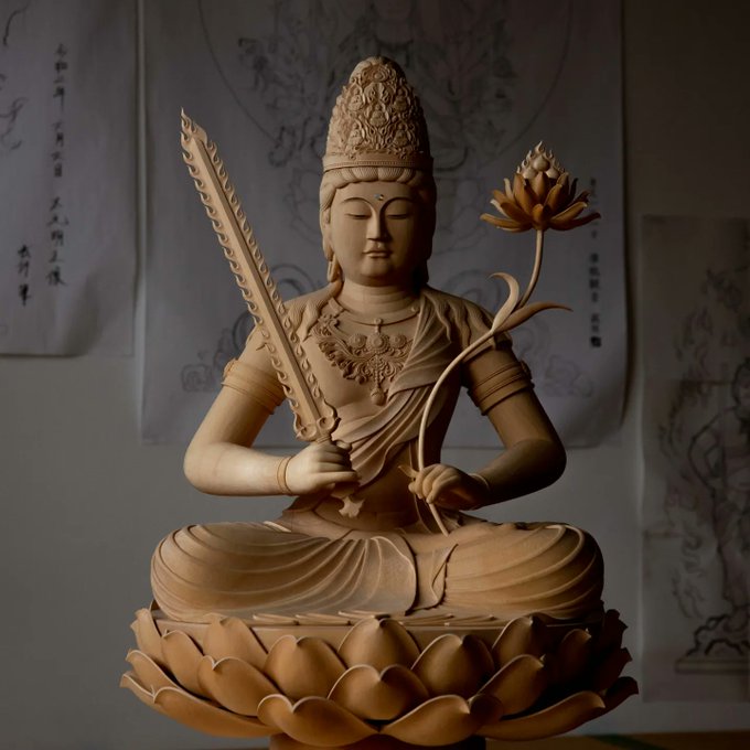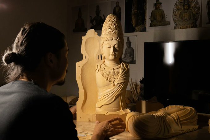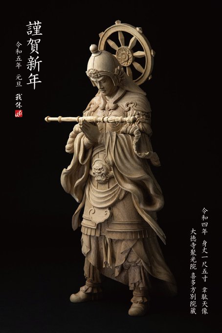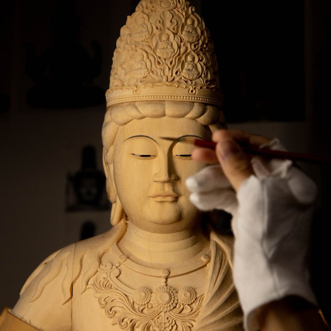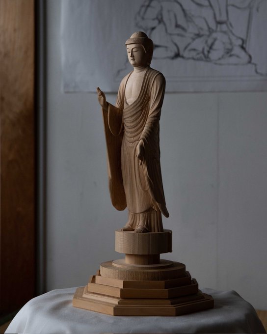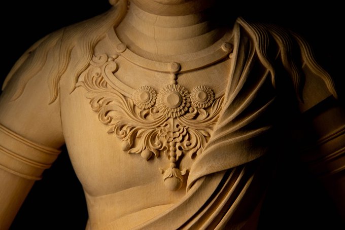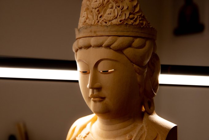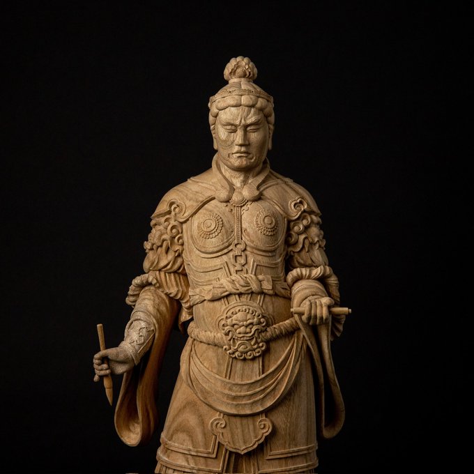 これは良い木目が出た好事例。 仏さんが「よっしゃ!出たってもええよ」って言ってくれはるわけです。 変な話…(フォロワーさん減らないで😅)でもほんと。 #仏像 #広目天 twitter.com/Gakyu_Miyamoto…