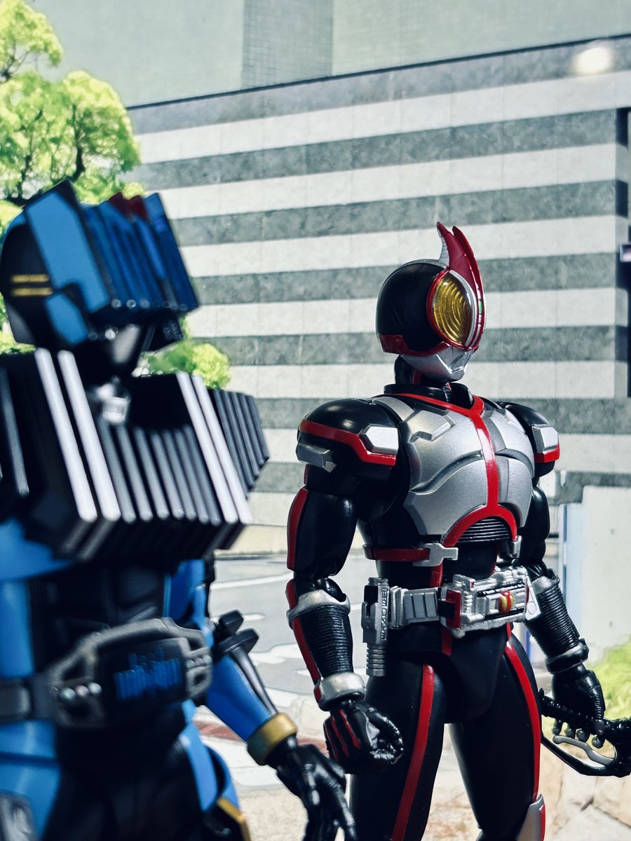 S.H.Figuarts 仮面ライダーキバーラ 改修 真骨彫と並べてもそこまで見劣りしないレベルには出来たと思います 改修点はALTに記載 #ニチアサフィギュア改造部 #仮面ライダーディケイド #造って遊ぼ