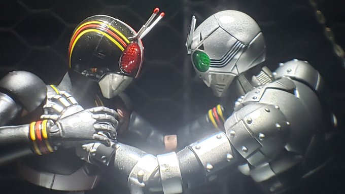 #夜のフィギュア撮影会 テーマ「フリー」 変…身…!! #仮面ライダー #仮面ライダーブラックサン #仮面ライダーブラック #シャドームーン #特撮 #オモ写 #フィギュアーツ写真部 #フィギュア撮影友の会