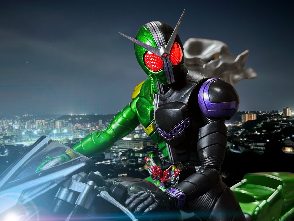 #夜のフィギュア撮影会 テーマ「フリー」 高熱をまとったメタルシャフトで敵を穿ちメモリブレイクする #仮面ライダー #仮面ライダーダブル #仮面ライダーW #特撮 #オモ写 #フィギュアーツ写真部 #フィギュア撮影友の会