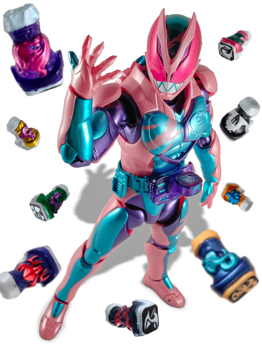 S.H.Figuarts 仮面ライダーインビンシブルジャンヌ スタンプ製作と額の水色ラインの塗装をしていないことに撮影後気づいたけど目立たないのでヨシ!(良くない) (1/2) #ニチアサフィギュア改造部 #仮面ライダーリバイス
