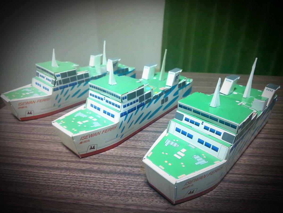 知多丸完成。よーやっと三兄弟揃いました( ゚∋゚) #ペーパークラフト #伊勢湾フェリー