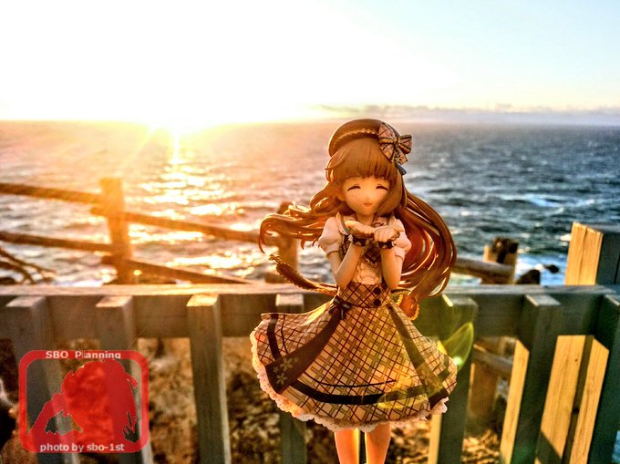 【シンデレラガールズ伊豆ロケ:12】 実は今回、河津桜を観たあとは流動的な行程で…(^^;) というわけで伊豆ロケ最後の写真は夕日の黄金崎と馬ロックです。日没の為これでロケ終了ですが、今回強風で行けなかった所ありましたが色々楽しめました(^.^)(終) #依田芳乃 #フィギュア撮影友の会