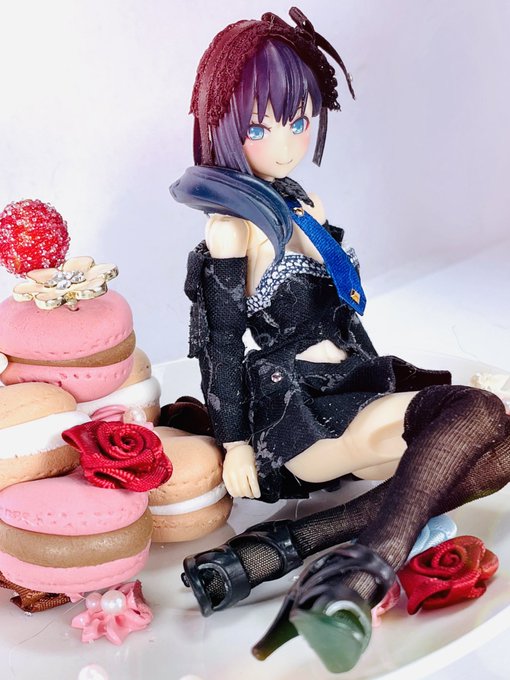 お昼休みに失礼します🐈⬛💜 食後のデザートにはかわいいかわいいマカロンとかわいいかわいいうちの子をどうぞ🧁☕️💓 お気に召していただけたならばファンに…笑 #全日本うちの子可愛いんでファンになってください協会 #メガミデバイス