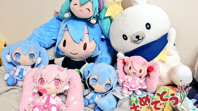 ミクちゃんHappybirthday!! ミクちゃんに出会えてよかったしこれからも沢山推し活するよ〜!✨ (しれっとユキネさんも集合) #初音ミク14周年 #初音ミク誕生祭2020 #ぬいぐるみの時間