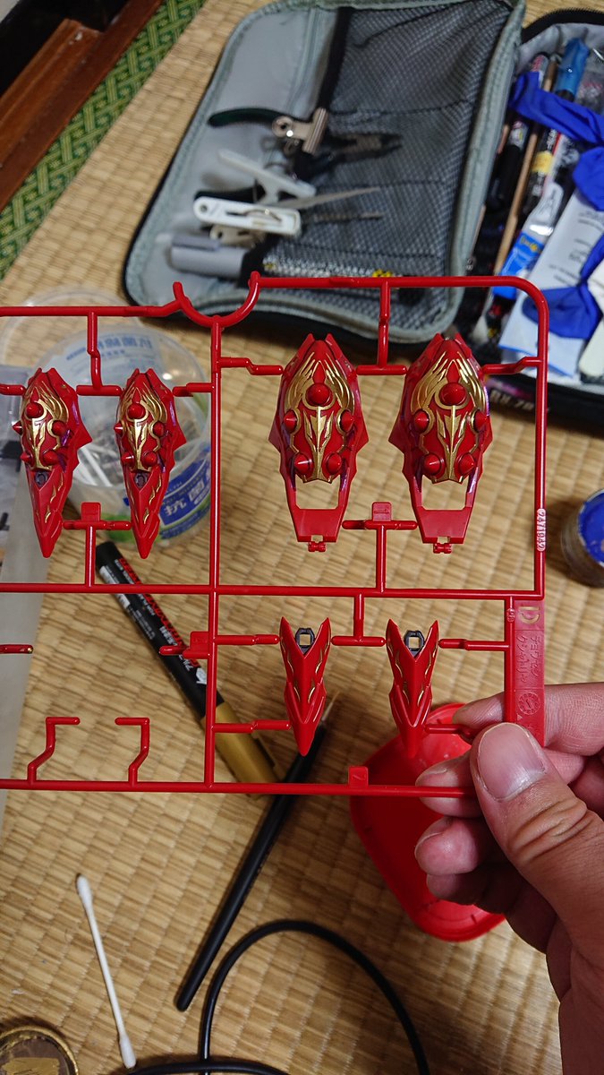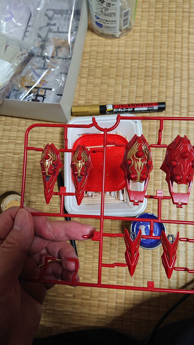 貂蝉クシャトリヤ、バインダーのゴールド塗装。 内側の模様はつまようじ塗りで終わりました。 あとは外側と裏側です。 今日はここまで。#ガンプラ #三国創傑伝 #制作過程の写真だけで興味を持ってくれる方へ届け