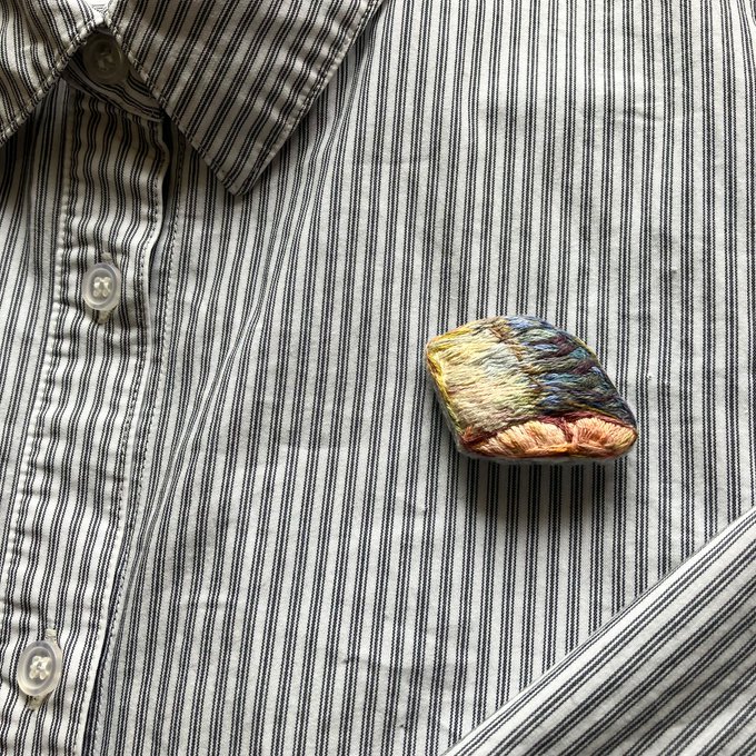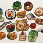 #夏の創作クラスタフォロー祭り くるみボタンの丸みを活かした刺繍作品を制作しています😊 今日も穏やかな1日となりますように🍀 🪡 minne.com/@amstitch #刺繍 #フェイクフード #ハンドメイド