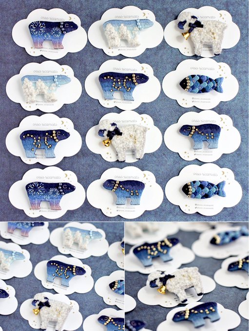 クリマの準備が大体終わったので、最後に記念の集合写真📷 写真に写りきっていない物も含め、orso ricamatoからは51個のブローチを持っていきます。 ぜひお気に入りを見つけに遊びに来てください🐻💨 #刺繍 #クリエーターズマーケット