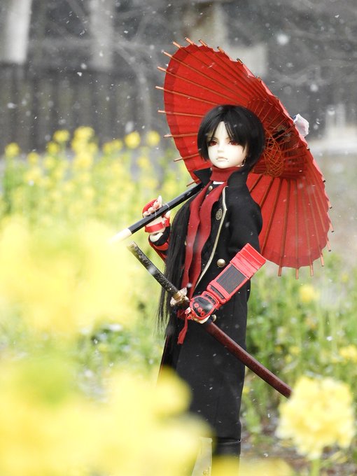 今夜のお題【 ぶきをもつ 】「過去」 #今夜のドール撮影120分一本勝負 今朝撮り。向日葵(と刀剣)男士! #とうらぶキャラド #刀剣乱舞 #和泉守兼定 #燭台切光忠 #加州清光 #銘犬吉 #スーパードルフィー