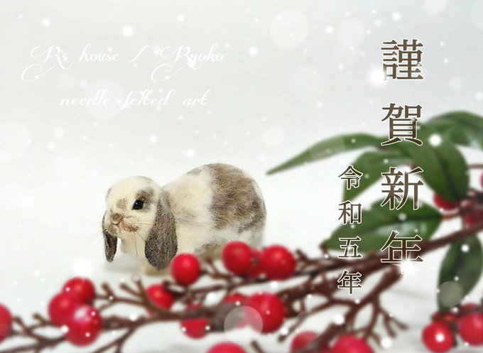 梅咲き誇る干支 卯 うさぎ 羊毛フェルト置物|ハンドメイド、クリエイター作品のマーケットプレイス Creema creema.jp/item/14727676/… @Creema_jpより #creema #creemaで販売中 #羊毛フェルト #needlefelt #干支 #十二支 #うさぎ #卯年 #卯