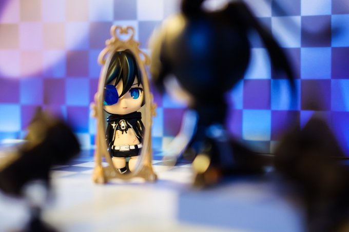 #深夜のねんどろ撮影60分一本勝負 5/15【であい】 生まれて初めて、 鏡に映る自分と出会った ブラック★ロックシューターちゃん 「けっこうエモいじゃん…私」 (←どこでそんな言葉を覚えた‼️) #ブラックロックシューター #BRS #ねんどろいど #可愛いと思ったらいいね