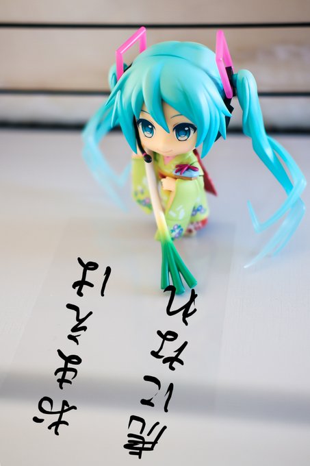 #深夜のねんどろ撮影60分一本勝負 1/1【おしょうがつ】 #深夜の初音ミク撮影60分一本勝負 あけましておめでとうございます🎍 2022年お正月、 ミク初音の毎年恒例 葱筆書き初め(かきぞめ)で ございます✨ #初音ミク #ねんどろいど #可愛いと思ったらいいね